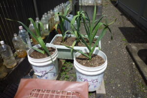 ニンニクも収穫の時期が来たのかこれ以上は大きくなってきませんが茎の部分は太くなってきています5月~6月ごろの収穫といわれていますので葉が枯れてくる頃が収穫の目安かな…と思っています。・・・(つづく)