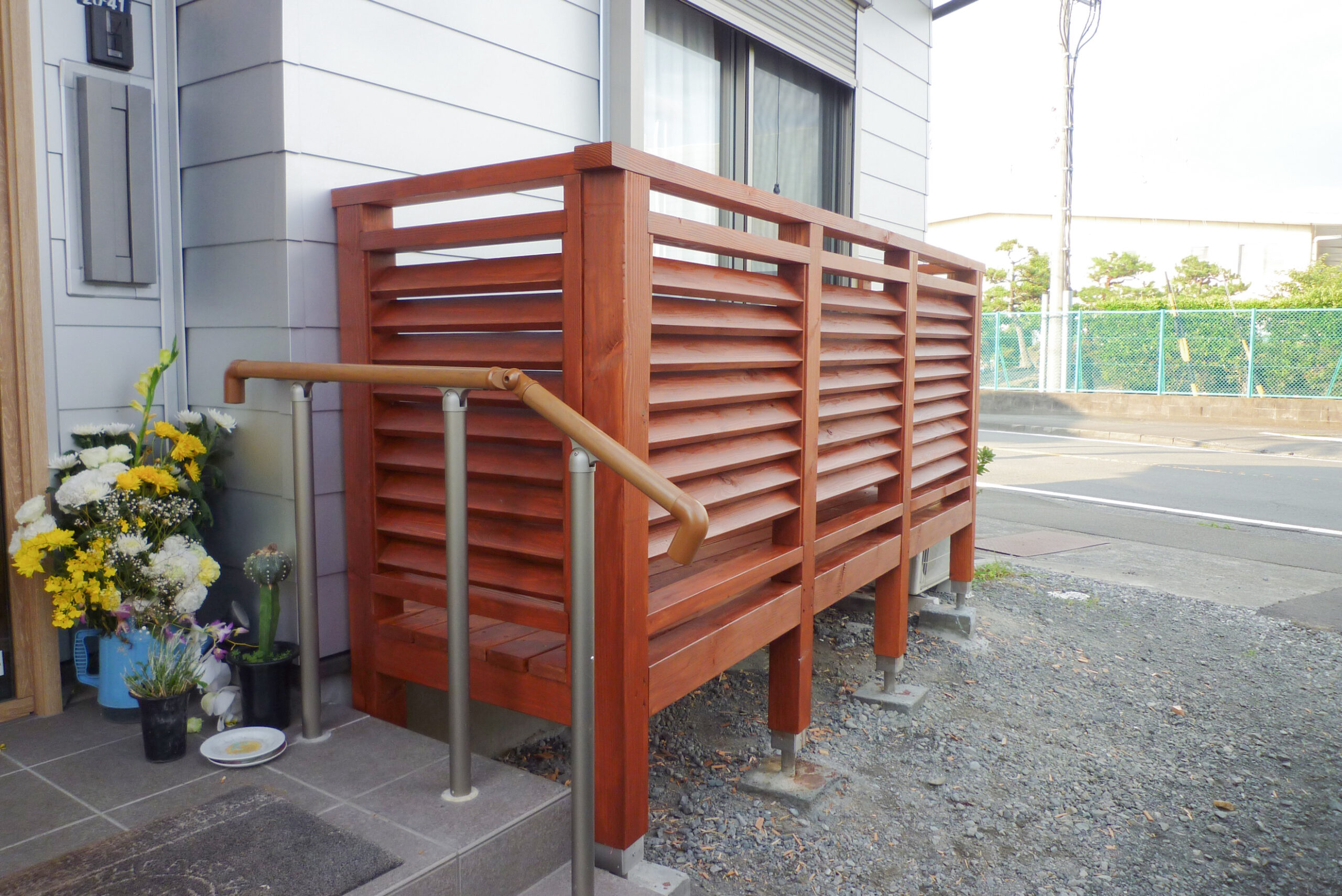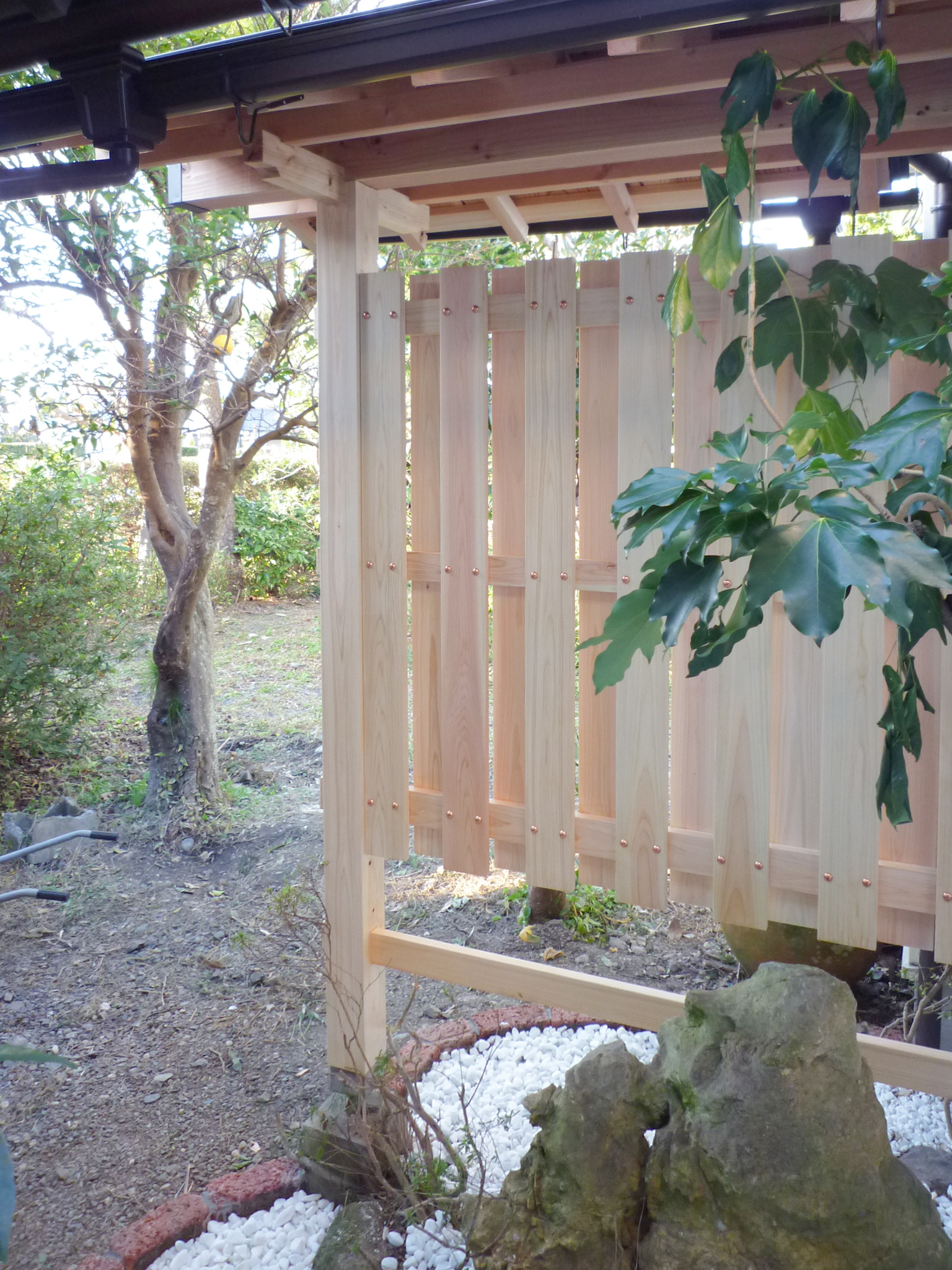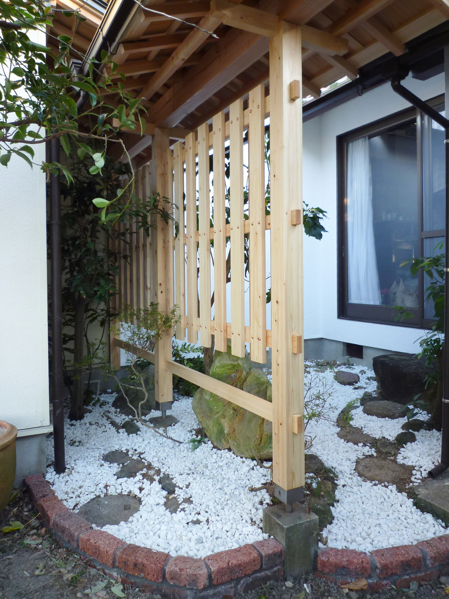 単純に壁を立てるだけでは能がありませんので、和風の建物に似合うように設計してつくらせてもらいました。