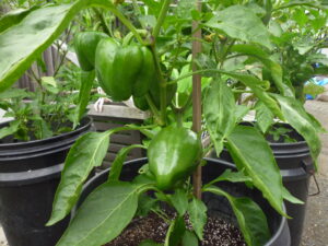 それに比べピーマンやパブリカ、ナス、シシトウなどはバランスの取れた大きさに成長し収穫も期待できます。昨年はピーマン122個 シシトウ745個 トマト中玉、大玉、ミニトマト合わせて125個収穫できました。これも経験の積み重ねで得た成果かなと思っています。